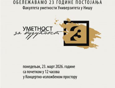 Поштоване колегинице и колеге, драги студенти Срдачно вам честитамо Дан Факултета уметности, који ћемо због презаузетости ове године накнадно прославити пригодним програмом. Факултет уметности, као овогодишњи добитник престижне Светосавске награде, захваљује студентима и запосленима на доприносу који су до сада дали и дају развоју и напретку свог Факултета. Срдачан поздрав,…