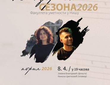 Петак, 13. март, 19 часова, Концертно-изложбени простор Факултета уметности у Нишу (Књажевачка 2а) ПРОГРАМ: Оторино Респиги: Мадригал и Берсеза Волфганг Амадеус Моцарт: Соната за…