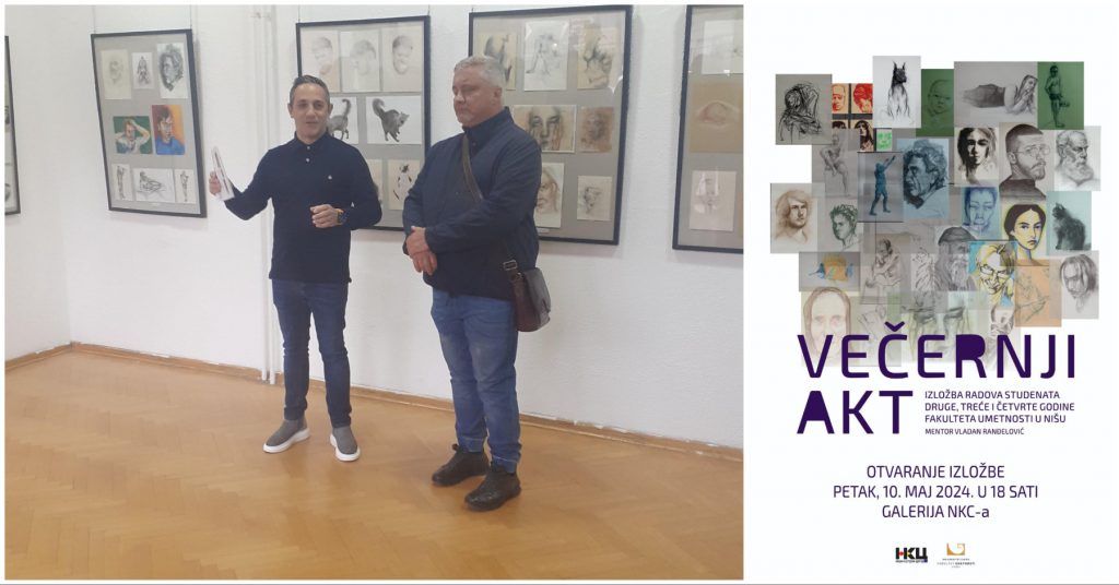 Континуирана сарадња Факултета уметности у Нишу и установе Нишки културни центар у Нишу и ове године обележава се заједничком студентском изложбом „Вечерњи акт“. Поставка указује на особене приступе цртежу, на однос студената према цртежу, открива њихова промишљања и различите начине реализације цртежа кроз различите цртаће технике. Пред нама је избор радова који износи реално стање актуелне уметничке студентске продукције. Он указује на ентузијазам младих стваралаца, на њихову динамичност и богатство идеја. На изложби се представило 32 студента ликовног и примењеног одсека, друге, треће и четврте године ментора Владана Ранђеловића.