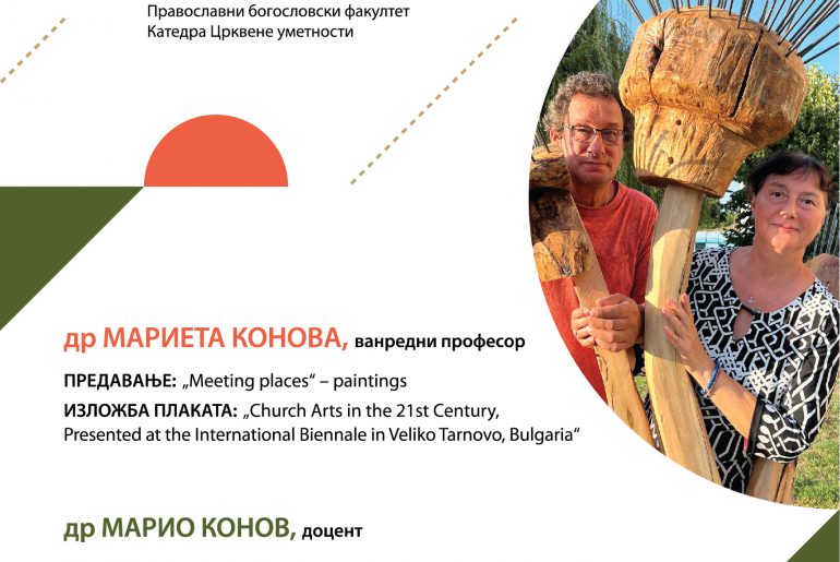 У оквиру Еразмус+ програма мобилности наставника, у уторак 28.3.2023. године у Концертно-изложбеном простору Факултета уметности у Нишу, одржаће се предавања и изложбе плаката др Мариете Конове, ванредног професора и др Марија Конова, доцента на Православном богословском факултету Универзитета у Великом Трнову „Св. Кирил и св. Методи“ (Бугарска).