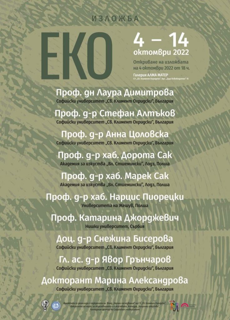 Проф. мр Катарина Ђорђевић је учесник по позиву у уметничком пројекту „Арт Еко“ који је организовала Катедра за визуелну уметност Софијског универзитета „Св. Климент Охридски“ из Бугарске, а руководилац пројекта је проф. др Лаура Димитрова. „Арт Еко 2022“ је актуелизовао проблематику еколошке свести, а учесници из Бугарске, Пољске и Србије су током боравка на Интернационалном арт симпозијуму Китену, Бугарска од 10 до 16. септембра 2022. године стварали уметничка дела на тему екологије.