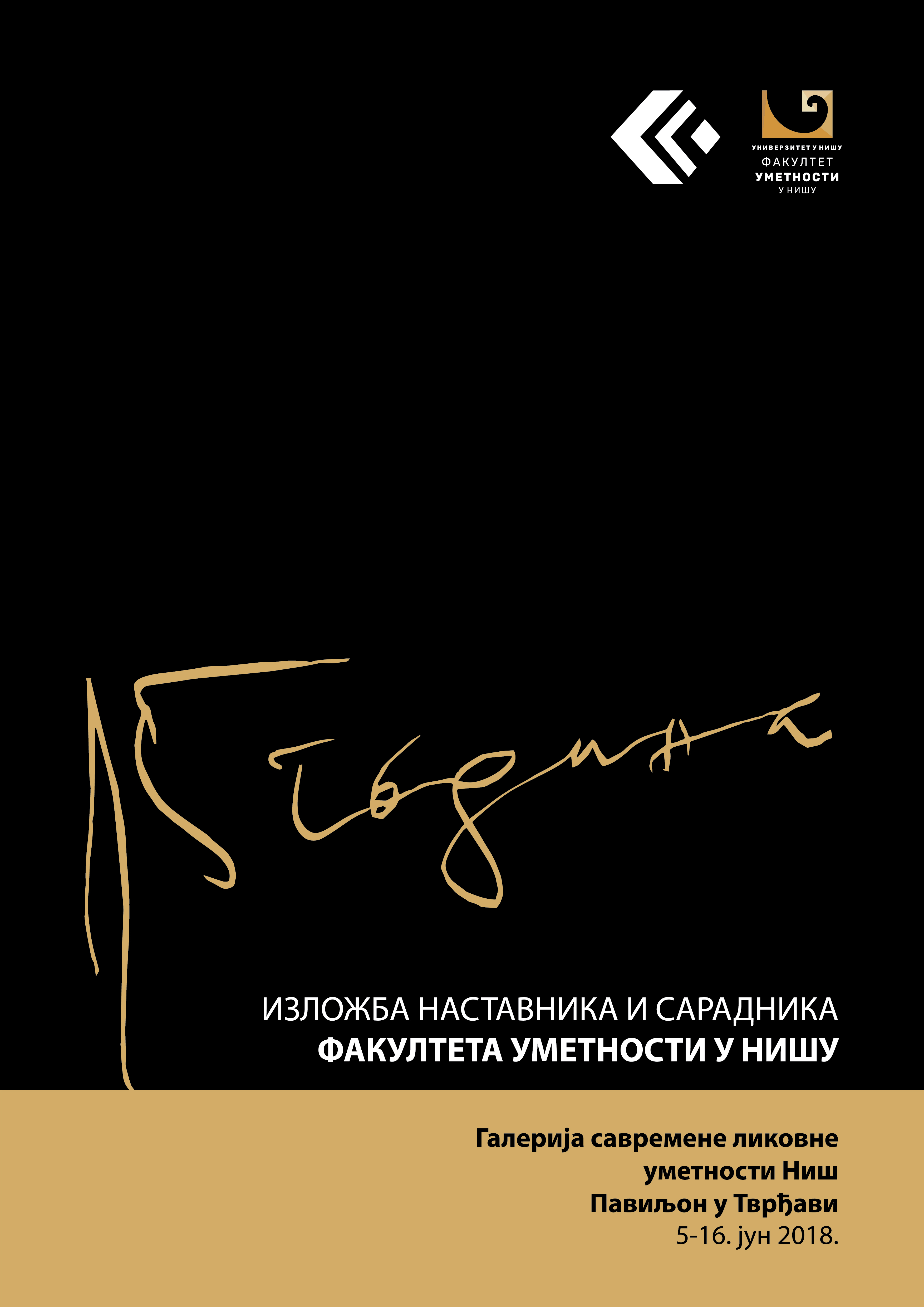 “Изложбом радова наставника и сарадника обједињених департмана за ликовне и примењене уметности употпуњава се обележавање 15. године постојања и трајања Факултета уметности Универзитета у Нишу. У складу са својим високим просветно –педагошким критеријумима када је реч о наставном кадру, Факултет уметности у Нишу у јубиларној години са великим задовољтством и нескривеним поносом износи пред публику и критичко око јавности разноврсност интересовања, визуелних средстава и креативних пракси запоселних који су високо вредновани ствараоци у актуелним уметничким токовима и културно – академском простору који сеже далеко изван територија наше земље.