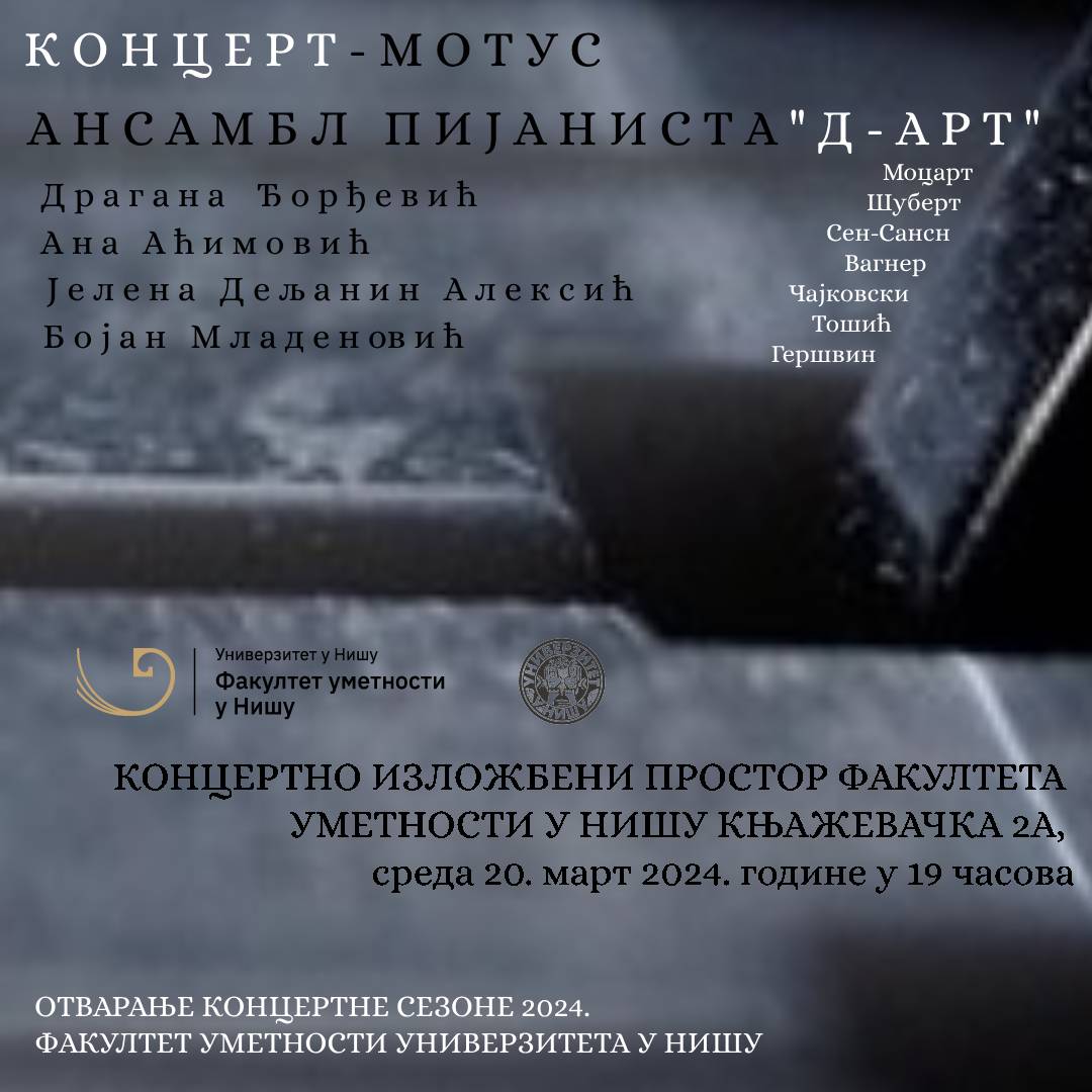 Концерт ансамбла пијаниста “Д-Арт” (два клавира у осам руку) – Драгана Ђорђевић, Ана Аћимовић, Јелена Дељанин Алексић, Бојан Младеновић – Хуманитарни концерт за помоћ Јани Митић