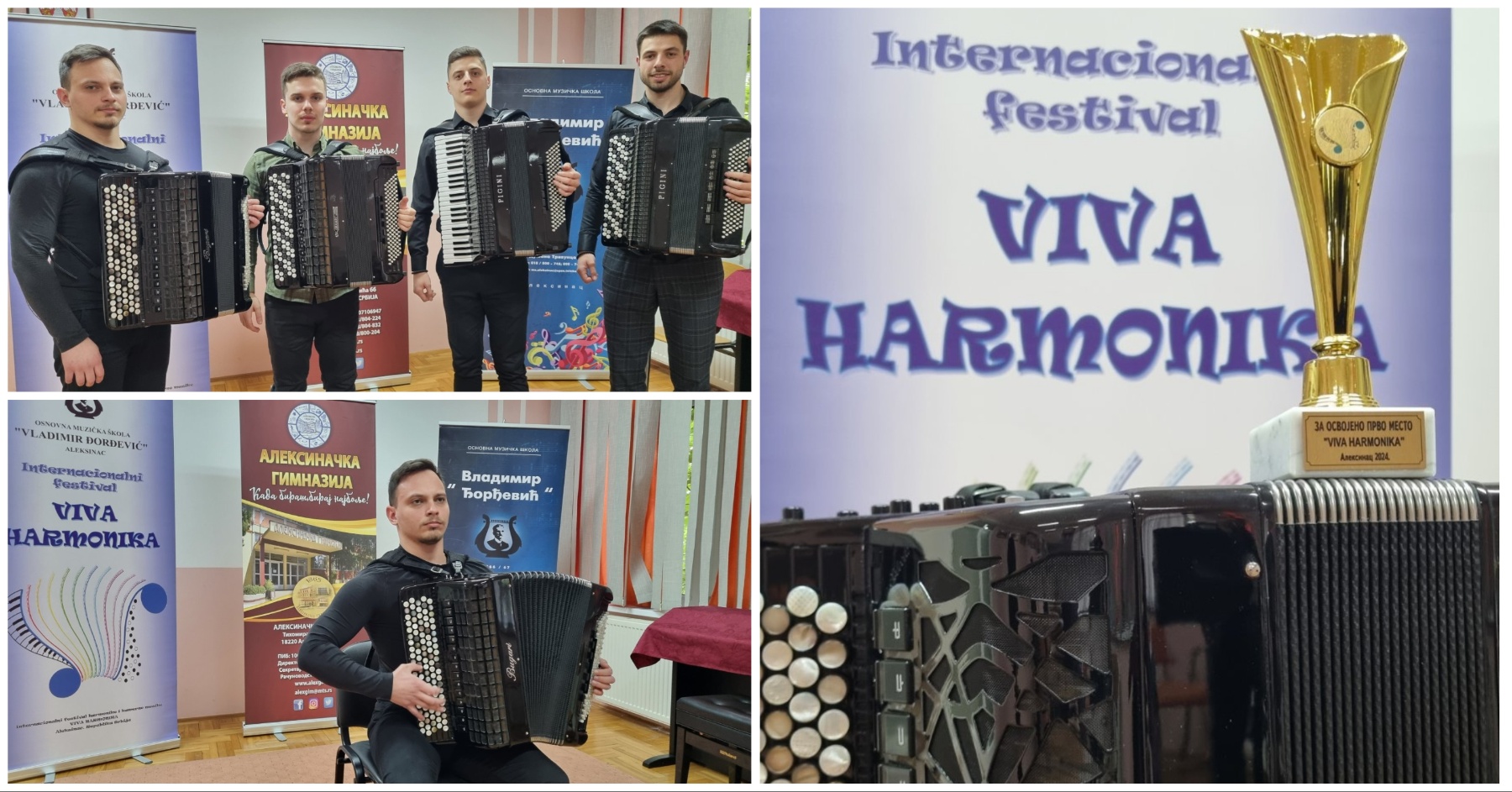 На Међународном такмичењу акордеониста “Вива хармоника” одржаном у Алексинцу 21. априла, студенти са катедре за хармонику у класи проф. мр Миљана Бјелетића и проф. Николе Пековића, Алекса Цветановић, Стефан Димитријевић, Петар Бешовић и Вељко Јовић, остварили су запажене резултате у категорији студената, освојивши прве награде. Победник студентске категорије је Стефан Димитријевић, студент 4. године у класи проф. мр Миљана Бјелетића.