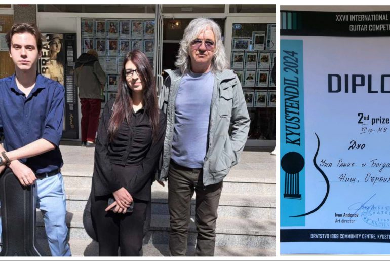 Дуо гитара у саставу Уна Ганић и Богдан Радаљевић из класе Братислава Златковића, ред. проф. освојио је II награду у категорији Камерни састави на на XXVI International Classical Guitar Copmpetition у граду Ћустендил – Бугарска.