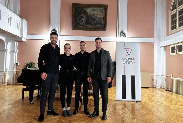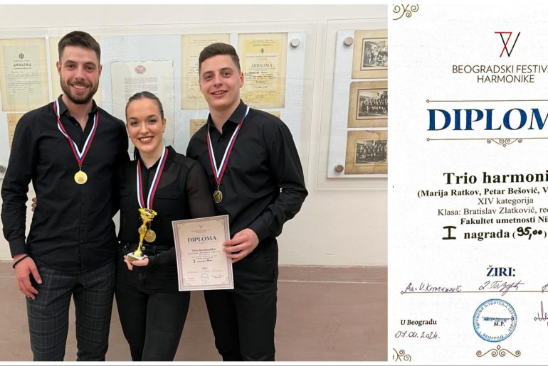 Трио хармоника у саставу: Марија Ратков, Петар Бешовић и Вељко Јовић из класе Братислава Златковића, ред. проф. лауреати су у категорији Камерни састави на 8. Београдском фестивалу хармонике.