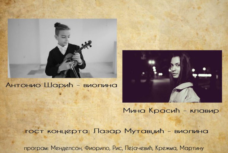Концерт Антониа Шарића, младог виртуозног виолинисте из Мостара, уз клавирску сарадњу Мине Красић у оквиру Концертне сезоне 2023/2024. Факултета уметности у Нишу