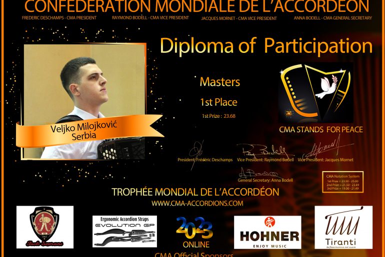 Победа Вељка Милојковића студента хармонике МАС на Интернационалном такмичењу „Светском трофеј“