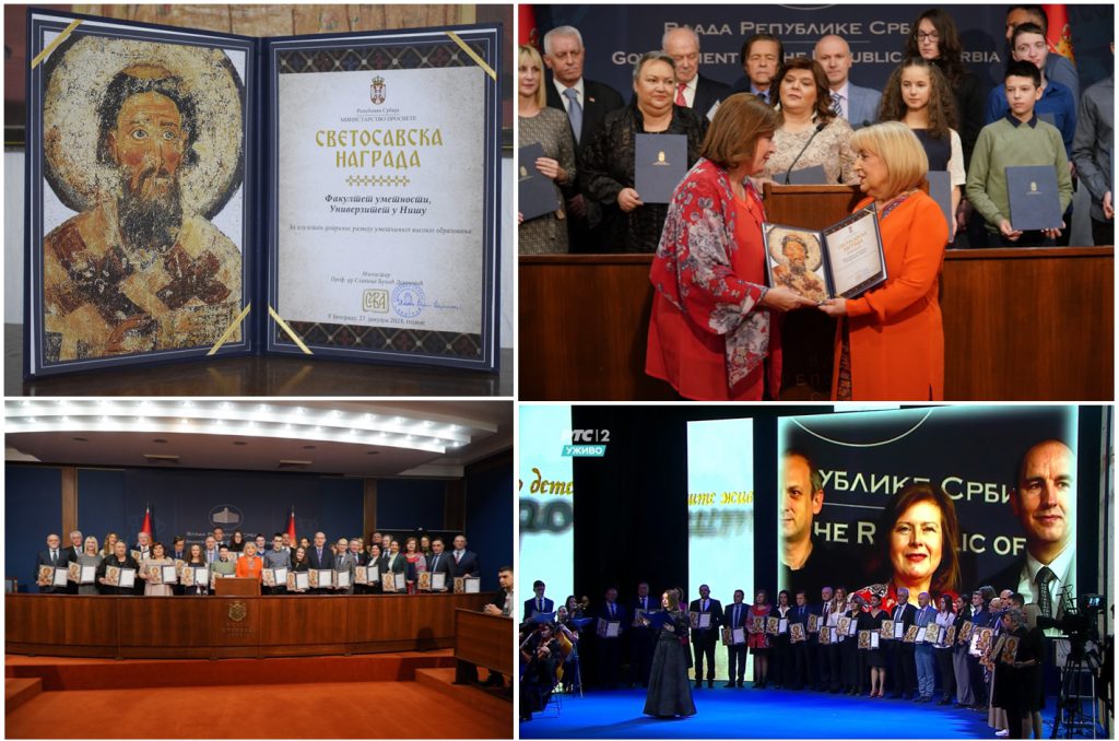 У суботу, 27. јануара 2024. године, на Дан Светог Саве, Светосавска награда за 2023. годину уручена је и Факултету уметности у Нишу. Ово значајно републичко признање, на пријему уприличеном тим поводом у Влади Републике Србије, награђеним појединцима и представницима институција и установа, уручила је министарка просвете проф. др Славица Ђукић…