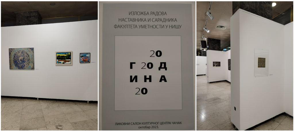 Поводом Дана Факултета уметности у Нишу, у Ликовном салону Културног центра у Чачку, који је национална престоница културе за 2023. годину, 17. октобра отворена изложба наставника и сарадника са Департмана за ликовне и примењене уметности, која ће трајати до 1. 11.2023. године.