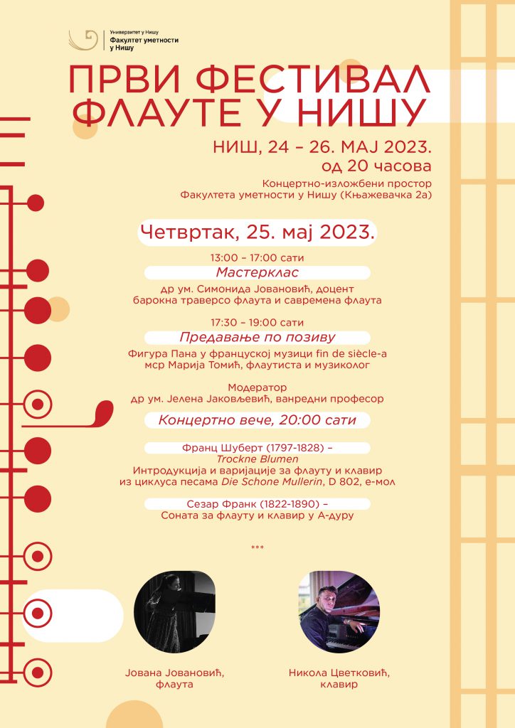 Програм ДРУГОГ дана “Првог фестивала флауте у Нишу” – четвртак, 25. мај 2023. године