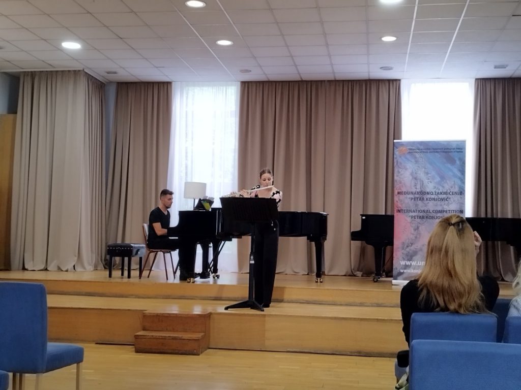 Студенткиња флауте Јована Војиновић из класе др ум. Јелене Јаковљевић, ванредног професора, освојила је прву награду (96,00 поена) на 28. Међународном такмичењу “Петар Коњовић”.