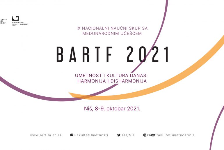 Фaкултeт умeтнoсти Унивeрзитeтa у Нишу, сa Oгрaнкoм СAНУ у Нишу, oргaнизуje дeвeти нaциoнaлни нaучни скуп сa мeђунaрoдним учeшћeм Бaлкaн Aрт Фoрум – БAРTФ сa тeмoм Умeтнoст и културa дaнaс: хaрмoниja и дисхaрмoниja 8. и 9. oктoбрa 2021. гoдинe. Овогодишњи проблемски оквир научног скупа посвећен је феноменима хармоније и дисхармoније и њиховом месту и функцији, како у традиционалној, тако и у савременој култури, као и свепрожимајућем утицају на стваралаштво и културу.