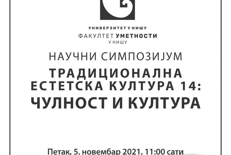 У организацији Српске академије наука и уметности – Огранак САНУ у Нишу и Универзитета у Нишу, Факултета уметности у Нишу, у петак, 5. новембра 2021. године са почетком у 11 часова, у мултимедијалној сали бр. 8 на Универзитету у Нишу, биће одржан научни скуп ТРАДИЦИОНАЛНА ЕСТЕТСКА КУЛТУРА 14: ЧУЛНОСТ И КУЛТУРА. Због неповољних епидемиолошких околности, овогодишњи скуп делимично ће бити одржан у виртуелном формату, а сви заинтересовани моћи ће да прате излагаче у директном преносу на Фејсбук страници Факултета уметности у Нишу.