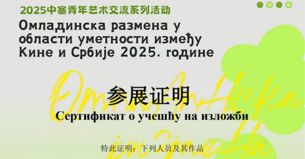У оквиру Омладинске размене у области уметности између Кине и Србије, отворена је Изложба ликовних и примењених уметности у Кинеском културном центру у Београду, 14. јула. 2025. године. Међу одабраним младим уметницима из обе земље, своју креативност и таленат представили су и студенти са Департмана за примењене уметности Факултета уметности…