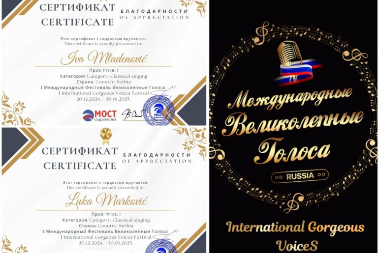 На међународном такмичењу соло певача у Русији “International Gorgeos Voices Festival” Russia АНО «Мост Содружества», Вокального конкурса Международные голоса, које се одржавало у периоду од 20.12.2024. до 30.1.2025. године, учествовали су студенти са Катедре за соло певање Факултета уметности Универзитета у Нишу, и освојили следеће награде: Ива Младеновић, сопран, I…