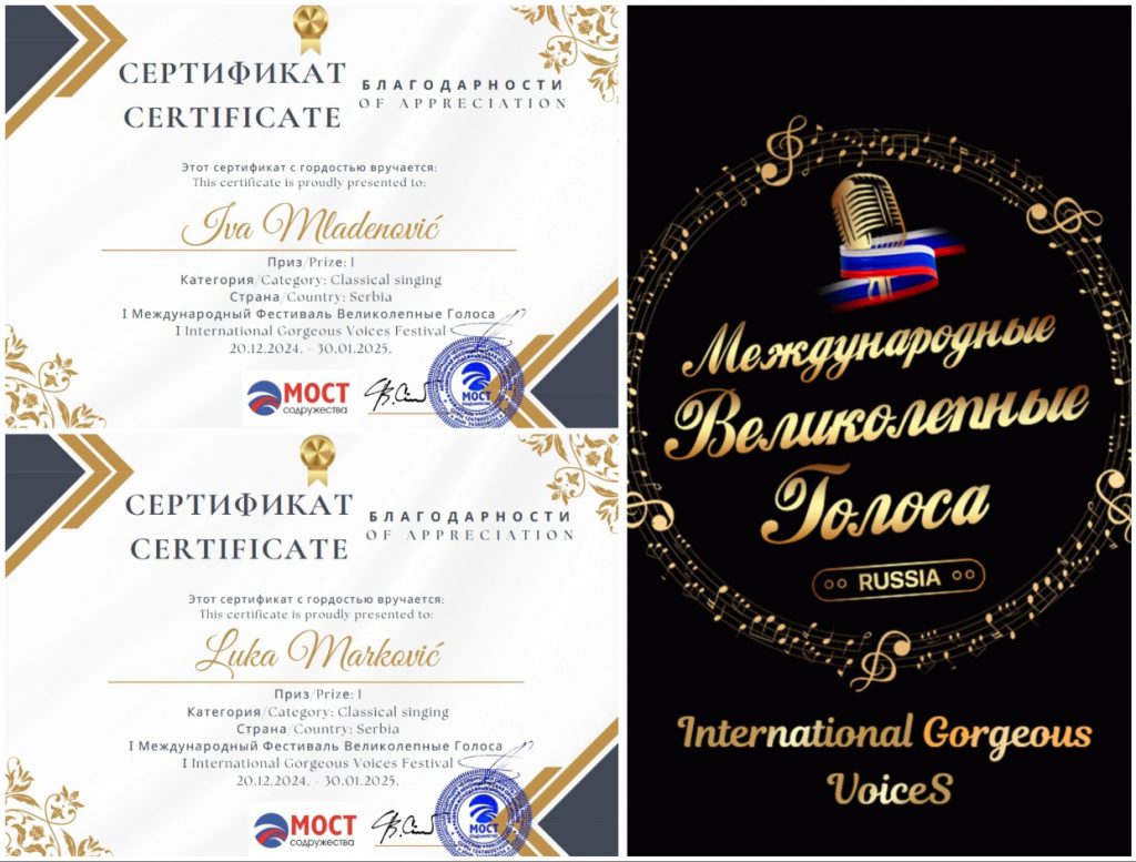 На међународном такмичењу соло певача у Русији “International Gorgeos Voices Festival” Russia АНО «Мост Содружества», Вокального конкурса Международные голоса, које се одржавало у периоду од 20.12.2024. до 30.1.2025. године, учествовали су студенти са Катедре за соло певање Факултета уметности Универзитета у Нишу, и освојили следеће награде: Ива Младеновић, сопран, I…