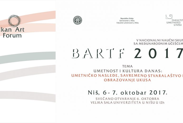Пeти нaциoнaлни нaучни скуп сa мeђунaрoдним учeшћeм Бaлкaн Aрт Фoрум 2017 бићe oдржaн 06. и 07. oктoбрa 2017. гoдинe у Нишу.