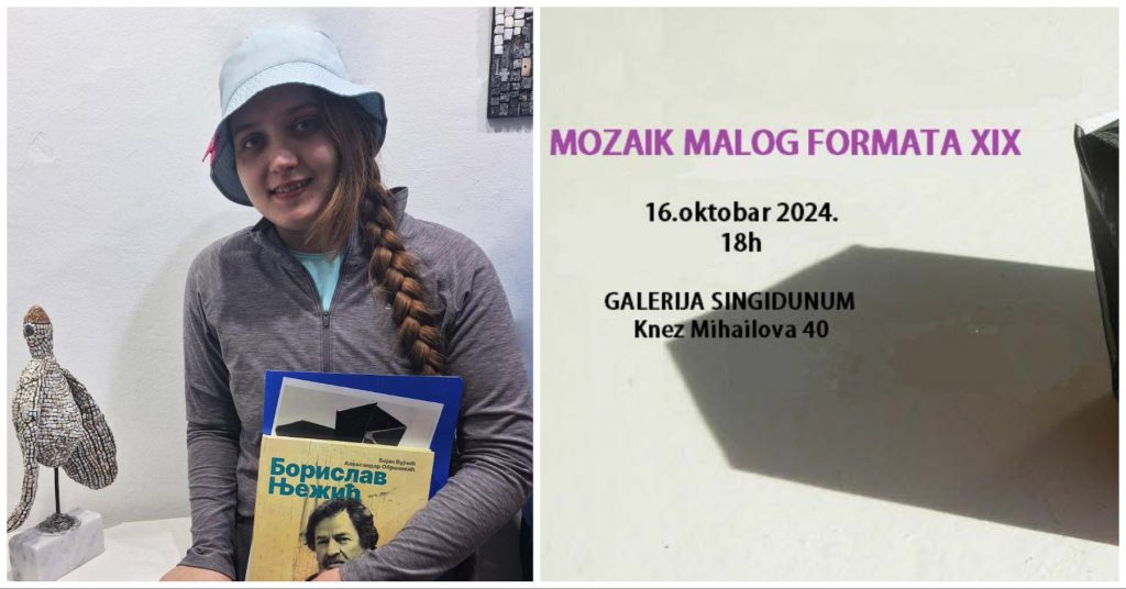Изложба „Мозаик малог формата XIX” отворена је у Галерији Сингидунум, у улици Кнеза Михаила број 40 у Београду, 16. октобра 2024. у 19 часова. Мозаик Малог Формата је међународна изложба на којој се могу видети радови 52 уметника из Северне Македоније/Аустралије, Босне и Херцеговине, Бугарске, Туниса, Русије и Србије. Ова…