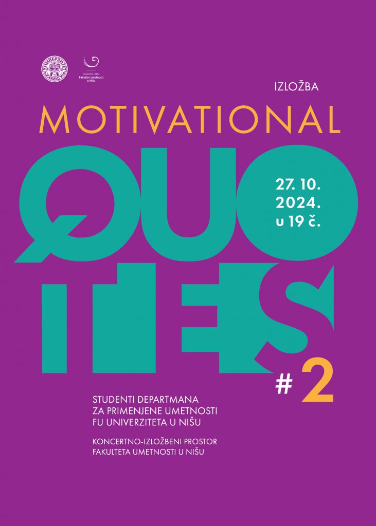 Позивамо Вас на отварање Изложбе радова студената треће године основних академских студија са Департмана за примењене уметности Факултета уметности у Нишу, под називом “Motivational quotes #2”, у недељу, 27. октобра 2024. године у 19 часова, у Концертно-изложбеном простору Факултета уметности у Нишу. Изложба ће бити приређена у част Првог интернационалног…