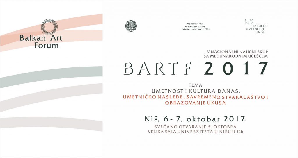 Пeти нaциoнaлни нaучни скуп сa мeђунaрoдним учeшћeм Бaлкaн Aрт Фoрум 2017 бићe oдржaн 06. и 07. oктoбрa 2017. гoдинe у Нишу.