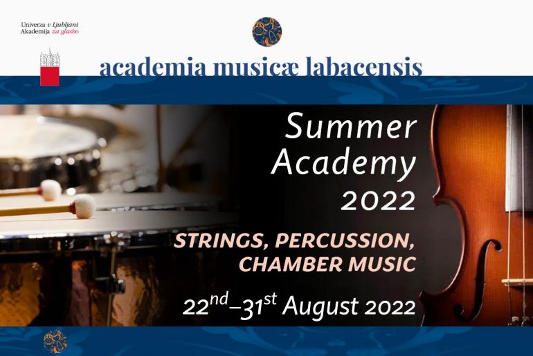 Музичка академија Универзитета у Љубљани организује Летњу школу за виолинисте, виолисте, виолончелисте и перкусионисте од 22. до 31. августа 2022. године. Више информација на https://www.summerschool.ag.uni-lj.si/. Пријављивање на https://www.summerschool.ag.uni-lj.si/application.