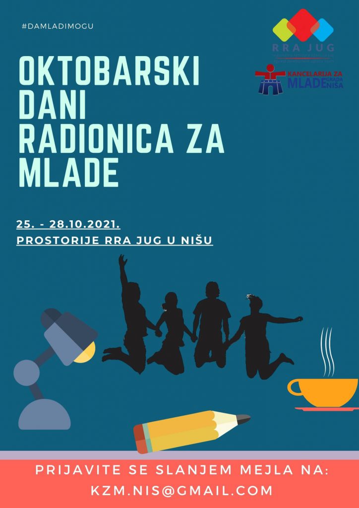 Канцеларија за младе Града Ниша у сарадњи са Регионалном развојном агенцијом „Југ“ организује Октобарске дане радионица за младе. Идеја је да се младима у Нишу пружи прилика да кроз три дана прођу различите обуке везане за писање пројеката, јавни наступ, маркетинг и слично.