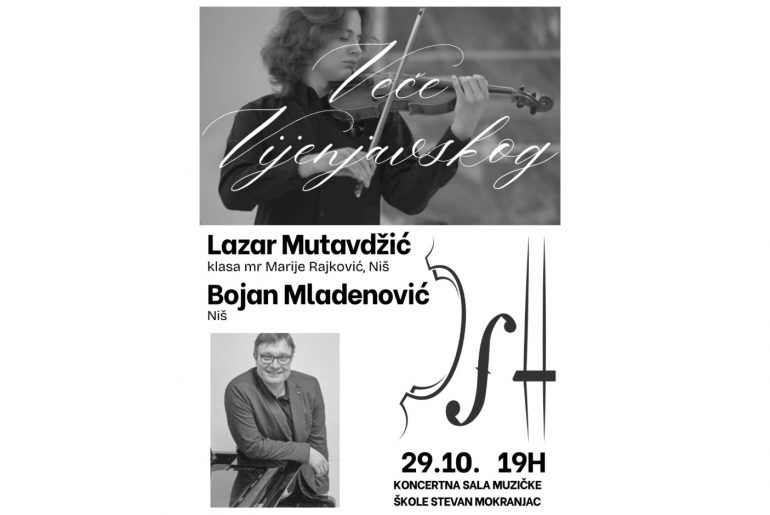 Дипломирани студент виолине Лазар Мутавџић и пијаниста доцент др ум. Бојан Младеновић су 29.10.2025. године, у сали музичке школе “Стеван Мокрањац” у Врању, одржали целовечерњи реситал виртуозних дела под називом ,,Вече Вијењавског”. Лазар Мутавџић је основне студије виолине завршио у класи професора мр Марије Рајковић.