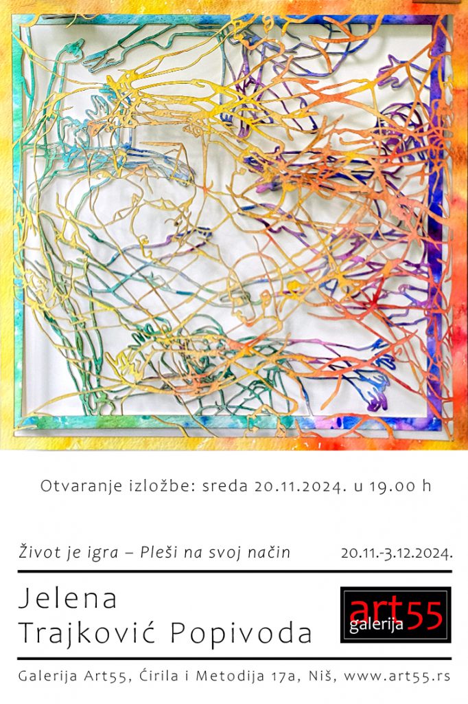 Изложба под називом “Живот је игра – Плеши на свој начин”, ауторке ванр. проф. др Јелене Трајковић Попиводе, биће отворена у средау, 20. новембар у 19 часова, Галерија Арт 55 у Нишу. У тексту предговора за каталог, проф др Слободан Радојковић наводи: Својом континуираном активношћу, аналитичношћу и постојаношћу идеја визуелна…