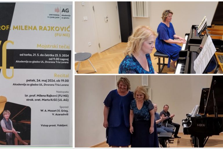 У оквиру Ерасмус програма размене наставног особља за 2023./24. студијску годину, током три дана, на Академији за гласбо у Љубљани, проф. Милена Рајковић одржала је мастерклас за студенте комплементарног клавира. По завршетку мастеркласа одржан је концерт студената.