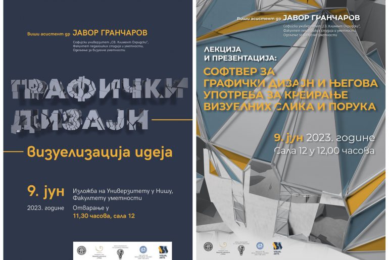 Изложбом „Графички дизајн – визуелизација идеја“ доц. др Јавор Гранчаров, наставник Одсека за визуелне уметности, Факултета педагошких студија и уметности, Софијског универзитета „Св. Климент Охридски“ из Бугарске ће представити серију радова из области графичког дизајна. Изложба ће бити отворена 9. јуна 2023. године у 11,30 часова у сали 12 Факултета…