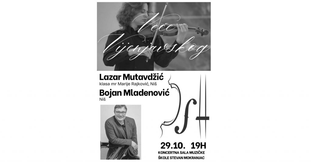 Дипломирани студент виолине Лазар Мутавџић и пијаниста доцент др ум. Бојан Младеновић су 29.10.2025. године, у сали музичке школе “Стеван Мокрањац” у Врању, одржали целовечерњи реситал виртуозних дела под називом ,,Вече Вијењавског”. Лазар Мутавџић је основне студије виолине завршио у класи професора мр Марије Рајковић.