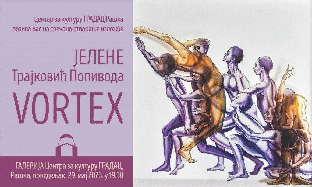 У понедељак, 29. маја 2023. године у 19.30, биће отворена изложба Vorteks (Вртлог) уметнице ванр. проф. др Јелене Трајковић Попиводе у Галерији Центра за културу “Градац”, Рашка. Назив Vortex је енглеска реч која у савременој психологији означава вртлог позитивне енергије који се налази у другој димензији и у којем се налази све оно…