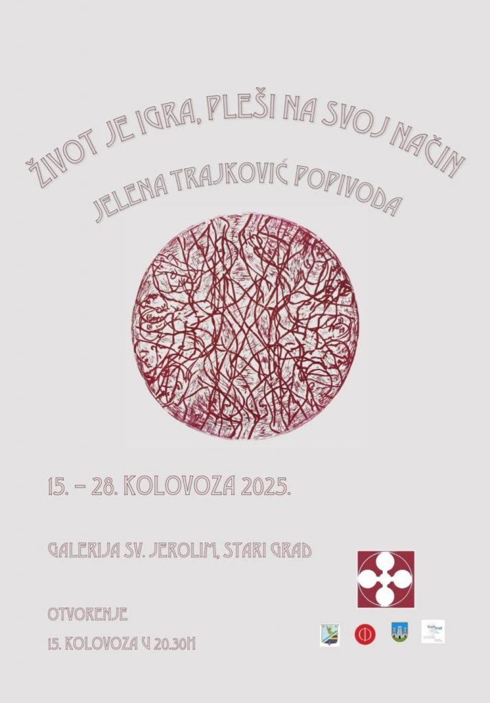 Изложба под називом “Живот је игра – Плеши на свој начин”, ауторке ванр. проф. др ум Јелене Трајковић Попиводе отворена је у петак, 15. августа у 20:30 часова у Галерији Св Јеролим, Стари Град, а у организацији Удруге Врбоњ оток Хвар. Изложбу је отворио дирецтор Фране Абрамовић а публици се…