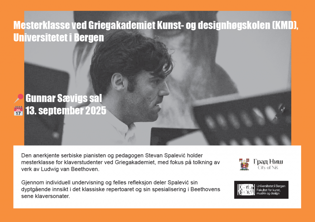 Др ум. Стеван Спалевић, ванр. проф. одржао је 13.09.2025. године мајсторски курс студентима клавира на Григ академији (Griegakademiet) на Факултету за примењену уметност, музику и дизајн (The Faculty of Fine Art, Music and Design) Универзитета у Бергену у Норвешкој.