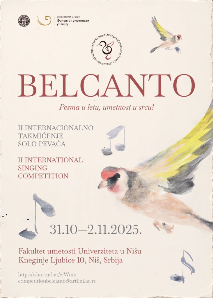 On Friday, 31. 10. 2025, II International Solo Singer Competition BELCANTO of the Faculty of Arts, University of Niš will begin. The competition will last until 2. 11. 2025.