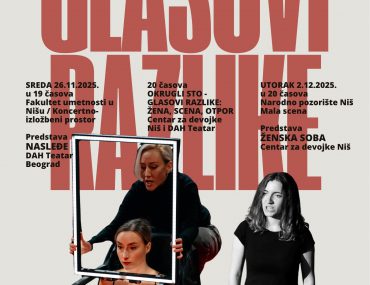 Glasovi razlike: Žene, scena, otpor Centra za devojke iz Niša i DAH Teatar iz Beograda 26. novembar U 19 časova, Fakultet umetnosti u Nišu -…