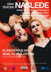 Umetničko-edukativni program „Glasovi razlike: Žene, scena, otpor” održaće se 26. novembra i 2. decembra u Nišu u saradnji DAH Teatra – Centar za istraživanje kulture i društvenih promena iz Beograda i Centra za devojke iz Niša.