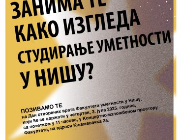 Позивамо те на Дан отворених врата Факултета уметности у Нишу, који ће се одржати у четвртак, 3. јула 2025. године, са почетком у 11 часова,…